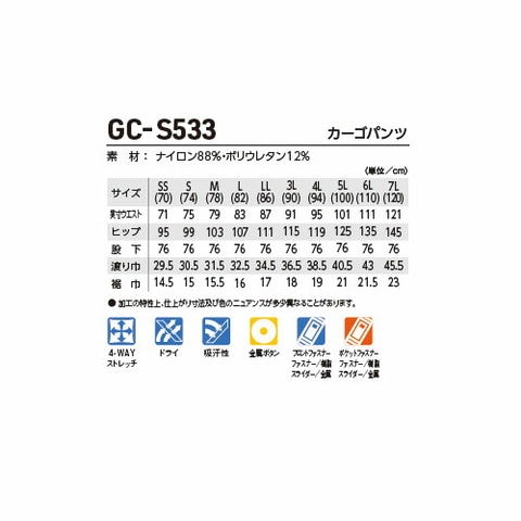 | 4WAYストレッチ/ドライ/吸汗性/通気性 |