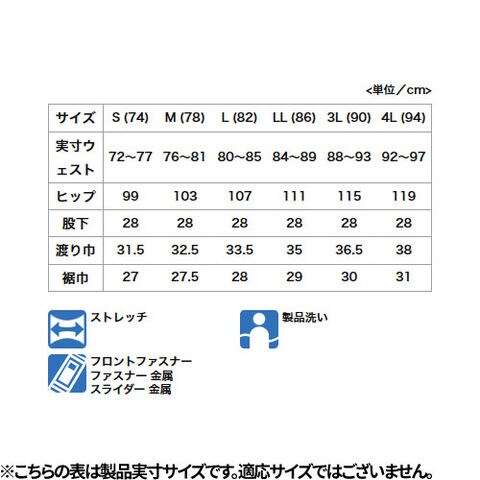 | 製品洗い、ベルトいらずウエスト調整紐、ウエストゴム、大き目のコインポケット、両サイドカラビナループ付き(カラビナは付属しません)、左腿スマートフォン用玉縁ポケット |