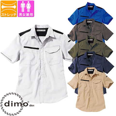 作業服 半袖シャツ dimo ディモ 半袖シャツ D5341 作業着 春夏 帯電防止 ストレッチ 吸水速乾 男女兼用 カジュアル アウトドア カッコいい おしゃれ シンプル