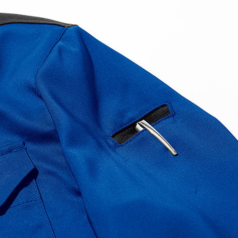 | 隠しドットボタン(前立て)、右胸ファスナーポケット深め、左袖ペン差し |