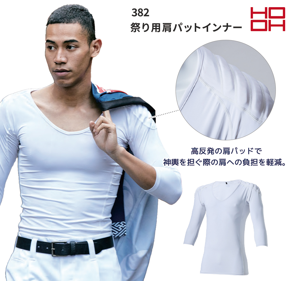 お祭り用品 インナー 祭り お神輿用 白 七分袖 祭り用肩パット入りVネック七分袖インナー 無地 シンプル ストレッチ 消臭 冷感 村上被服 鳳皇 HOOH お祭り 夏祭り 児童会 花火大会 衣装 縁日 出店 おみこし 粋 和 382 作業服 通年