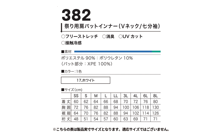 フリーストレッチで着心地快適。さらにUVカットで紫外線を防ぎ、消臭、接触冷感でイヤな汗臭や不快感を顕現してくれます。 夏祭りなどイベントに最適。