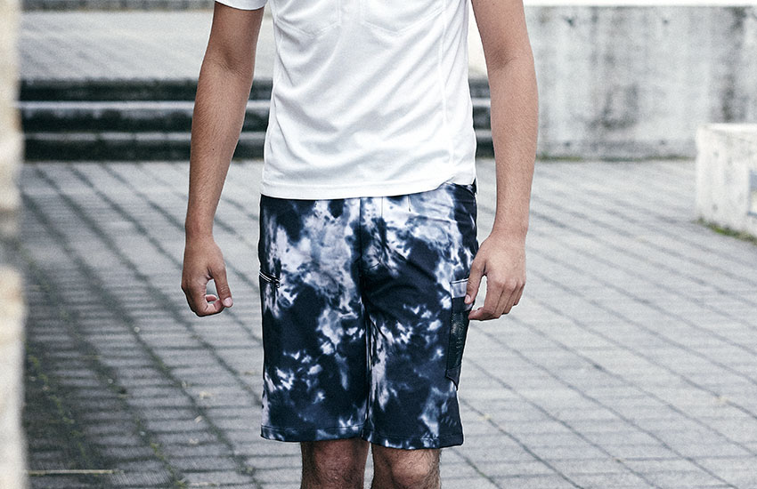VILEAのハーフパンツ。素材は加撚を強くしたジャガード織で裏に凹凸がありべたつかずスーパーストレッチで柔らかく強度もあります。