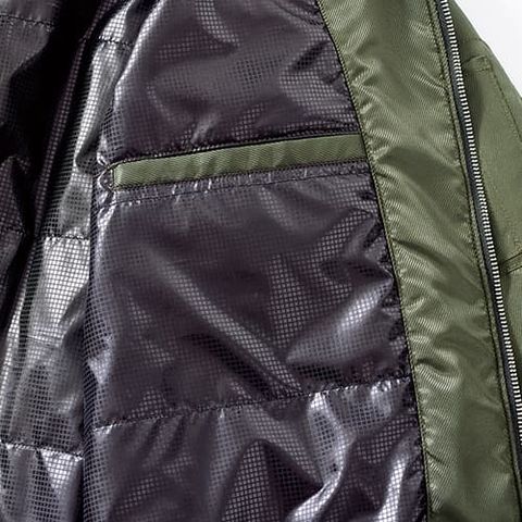| 保温裏アルミ、防風・撥水、軽量防寒 |
