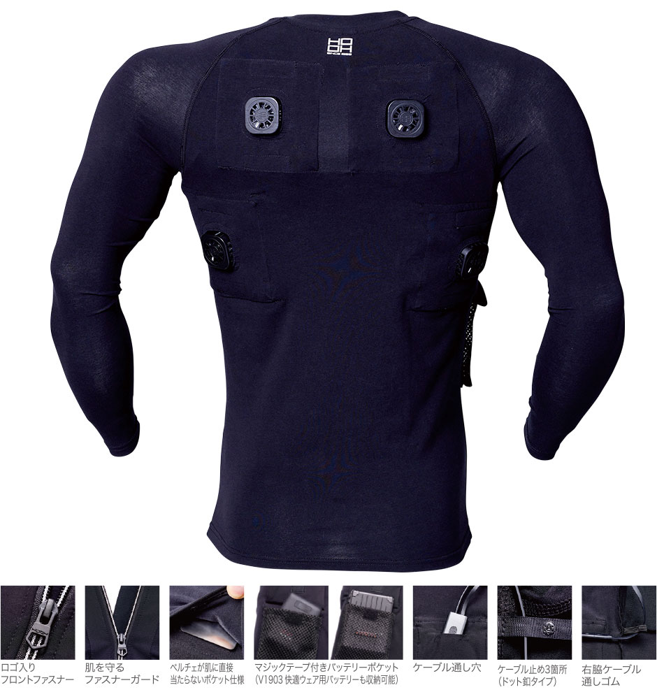 | アンダーウェアとして着用することによりスイッチオンで瞬間冷却。ファン付き快適ウェアと組み合わせてお使いいただくことによりファンの風とペルチェの冷却でより涼しさを感じることができます。 |