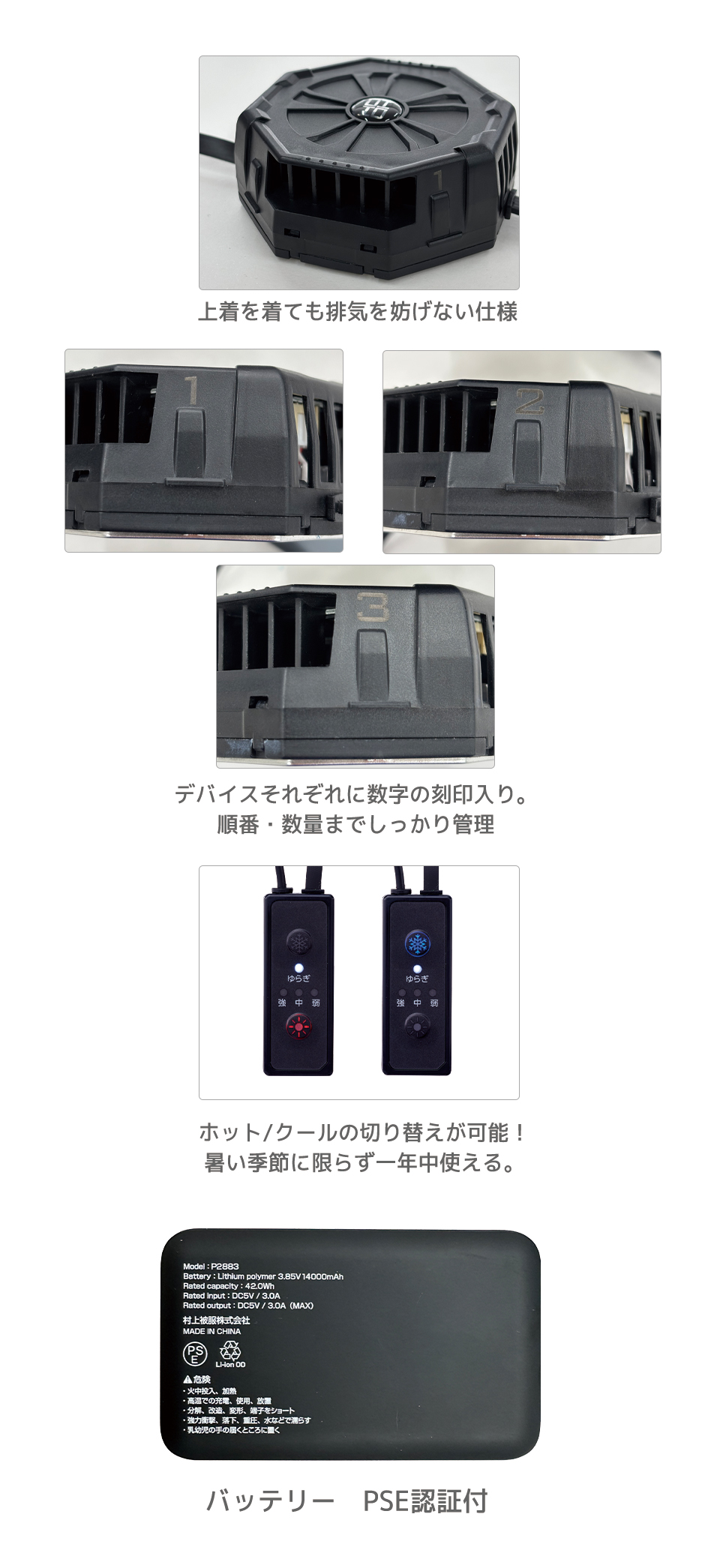 | 届出事業者:村上被服株式会社 PSマークの種類:PSE made in China |