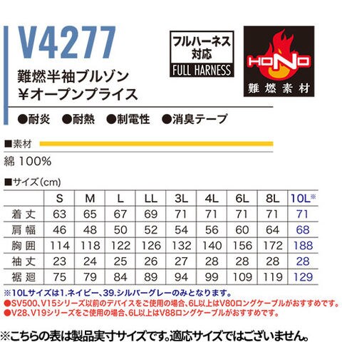 EFウェア 墜落制止用器具 村上被服 鳳皇 HOOH 快適ウェア 難燃半袖ブルゾン 2025年モデル(ファン無し) V4277 作業着 作業服 春夏 耐炎 耐熱 制電 燃え広がりにくい 火花 溶接 工場
