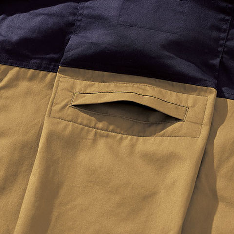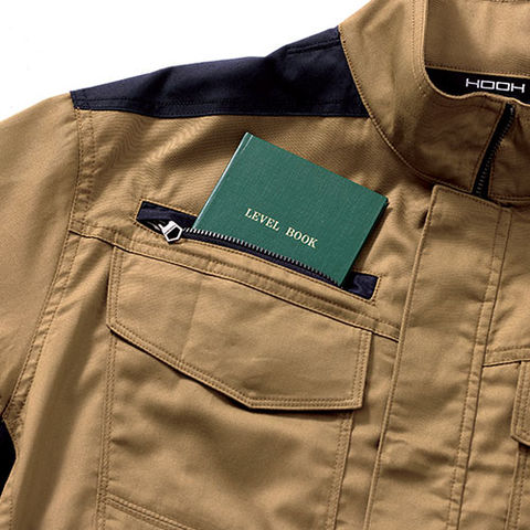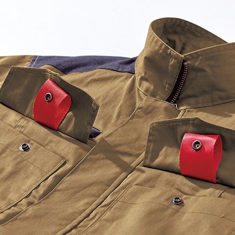 | ファスナー付きレベルブック収納ポケット、隠し金属ボタン、ファスナー付きバッテリーポケット、ケーブル止めマジックテープ、ランヤード取出し口、ダクト、雨ぶたフック掛け、袖ペン差し |