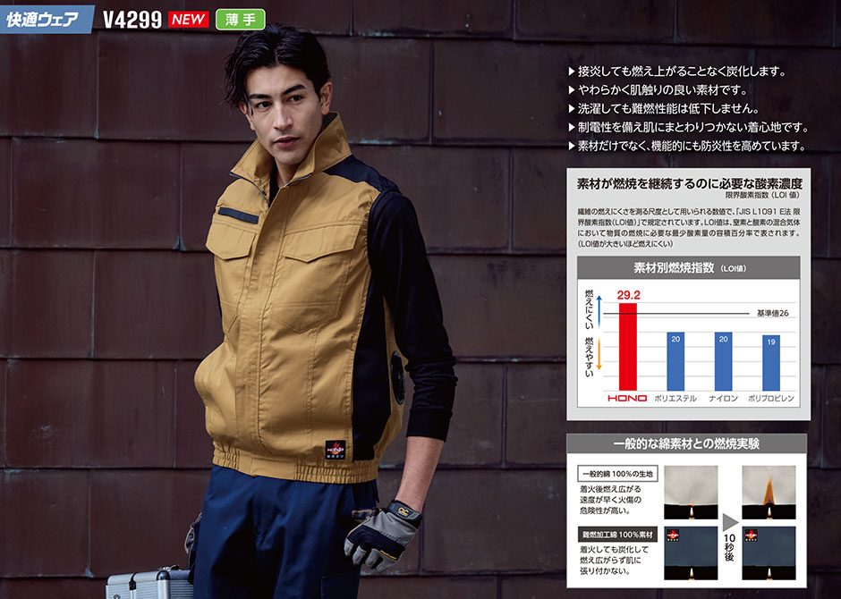 EFウェア 墜落制止用器具 村上被服 鳳皇 HOOH 快適ウェア 難燃ベスト 2025年モデル(ファン無し) V4299 作業着 作業服 春夏 耐炎 耐熱 制電 燃え広がりにくい 火花 溶接 工場
