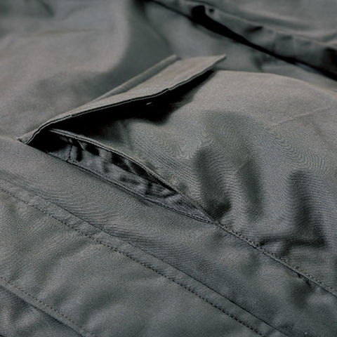 | ファスナー付き縦型胸ポケット、難燃ファスナー、脇ダブルポケット、マチ付き脇ポケット、隠し金属ボタン(雨ぶた・前立て5か所)、衿内側難燃ジャージ付き、氏名片布、左内側ポケット、保温裏アルミ(ブラック) |