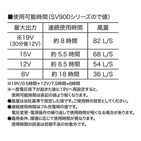 19V※ 連続使用時間:約8時間、風量:82L/s