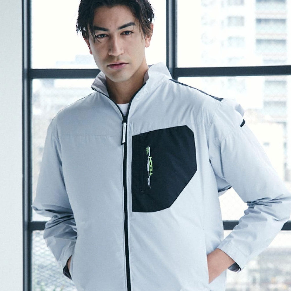 裏チタンの強力な遮熱性と、保冷剤ポケットを搭載したハイスペック仕様。フードがないため首回りがスマートで、あらゆる現場やスタイルにマッチする一着です。