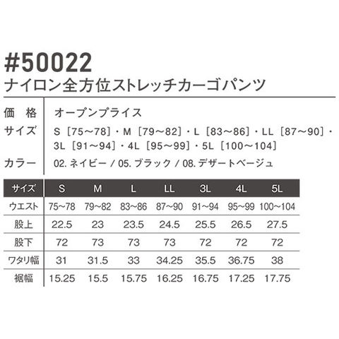 作業服 カーゴパンツ アイズフロンティア I'Z FRONTIER ナイロン全方位ストレッチカーゴパンツ #50022 作業着 春夏 軽量 薄手 ストレッチ テーラー スーツ イージーメンテナンス