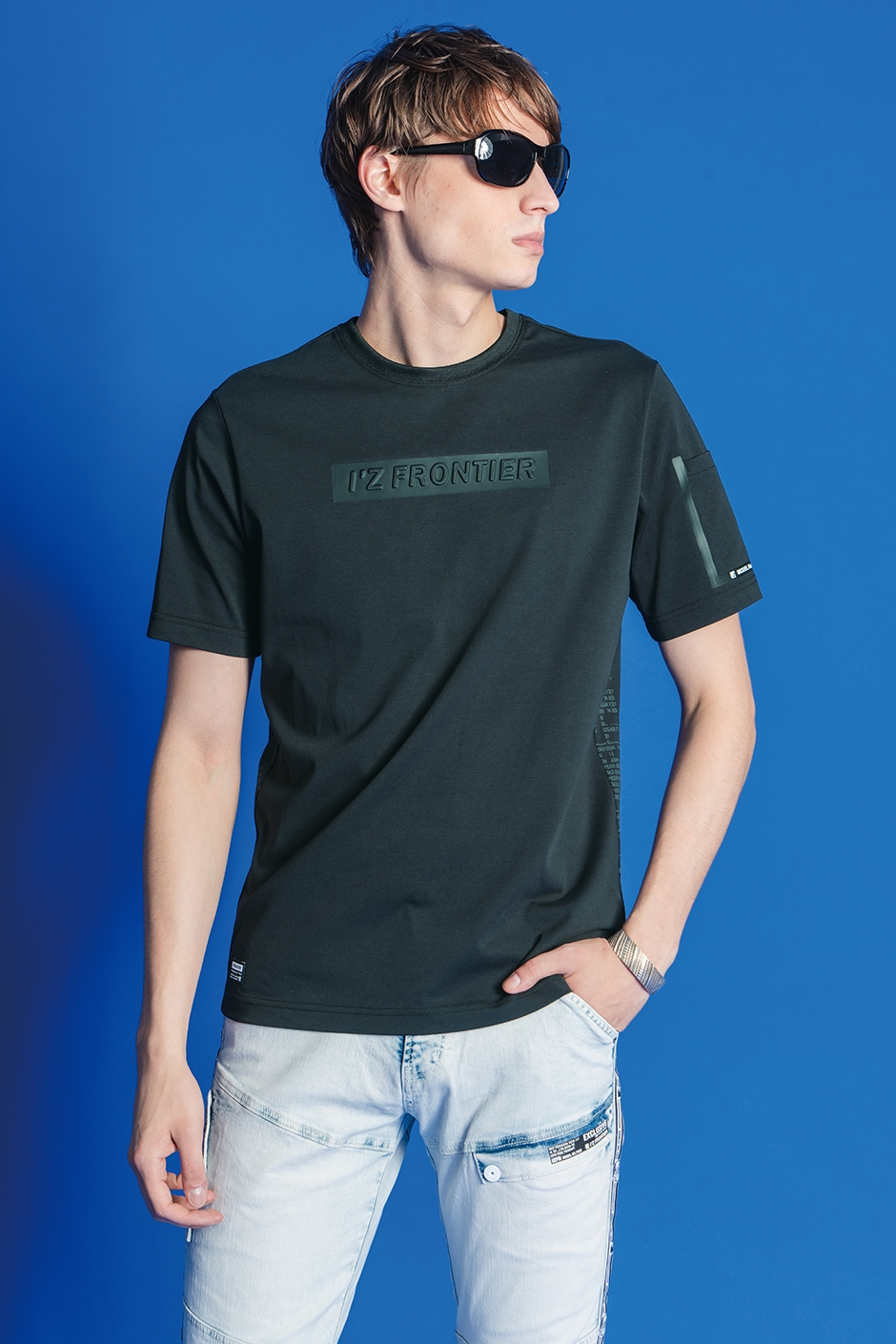 | 特殊プリント+3Dエンボス加工、左袖ワイドペンポケット |
