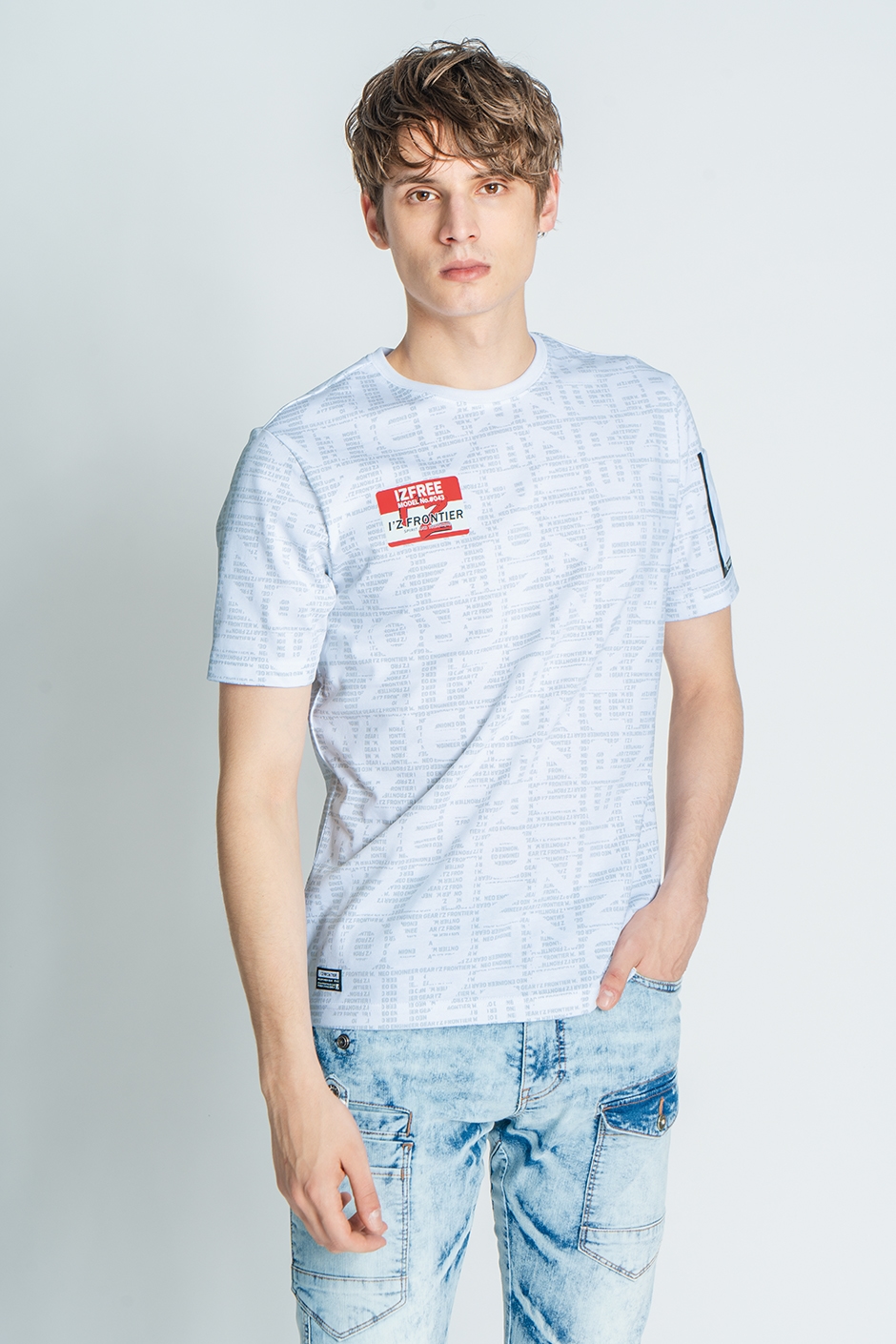 | ワンポイントブランドロゴ、左袖ワイドペンポケット |