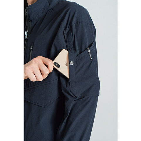 | 右胸縦ポケット、左袖ワイドペンポケット、ダブルポケット仕様、左脇内ポケット |