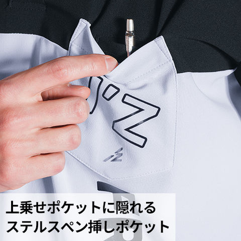 ●高級感あふれるシャープなルックスは、着るシーンを選ばずワークシーンだけでなく様々な場面で着用可能●独自開発の素材により、一般的な天竺素材と比べ約1.8倍の優れた通気性を実現