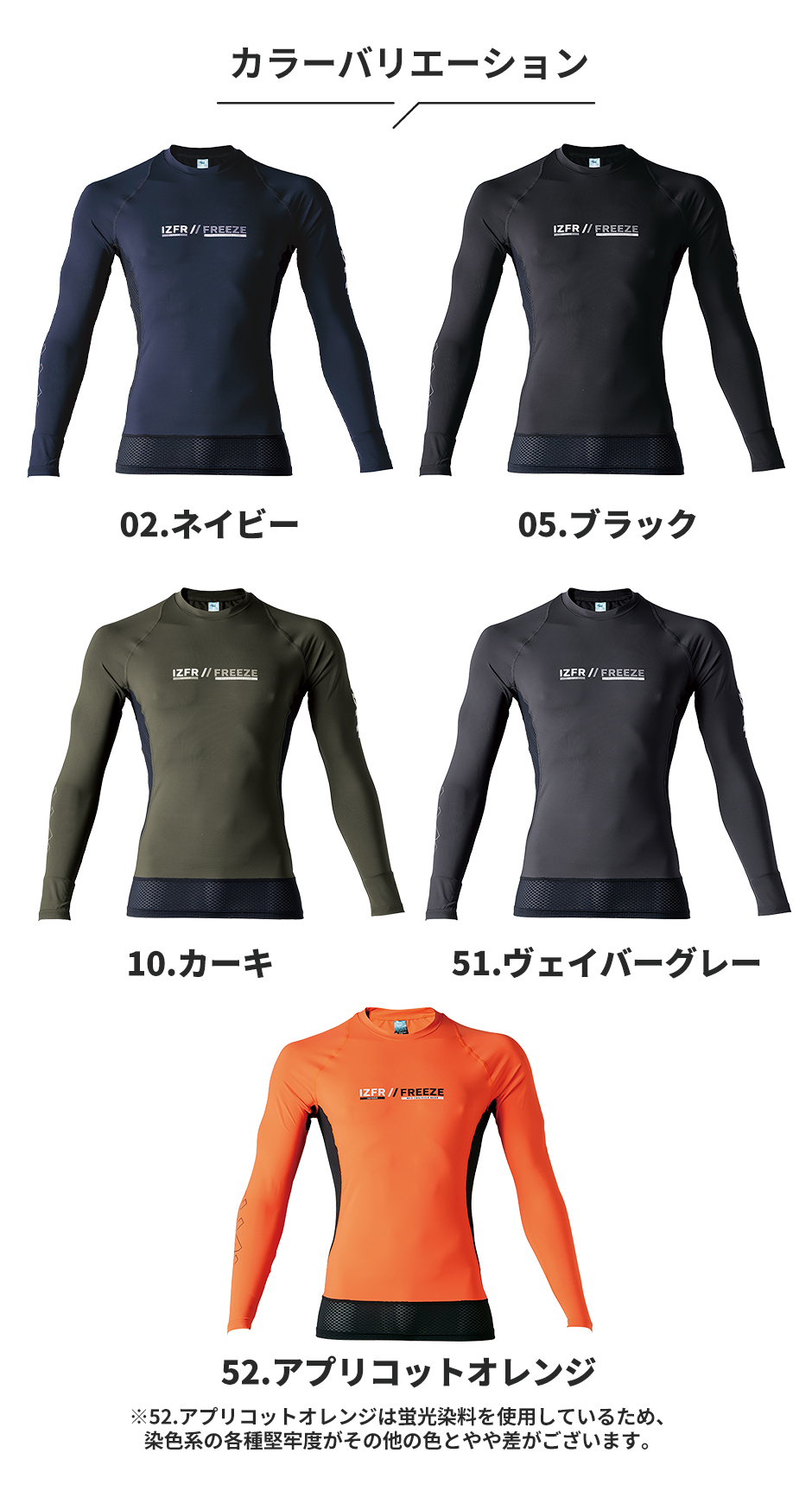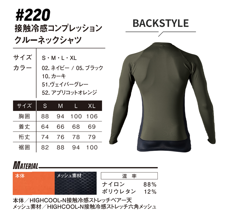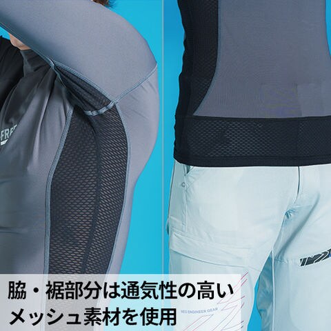 | ●ナノレベルまで砕いた冷感鉱物を繊維内部に練り込むことで、最強の接触冷感を実現 ●遮熱機能つきで屋外作業時も暑さを感じにくい ●脅威の99.9%UVカット機能 ●優れた吸汗速乾性でさらっとした着心地 ●汗をかきやすい内股部分は通気性の高いメッシュ素材を使用 ●伸長率タテ52%、ヨコ67%、伸長回復率94%を誇る超ストレッチ素材で動きやすい ●大人気商品の新作モデル!最新のトレンドを抑えたおしゃれなデザインでハーフパンツとも合わせやすい |