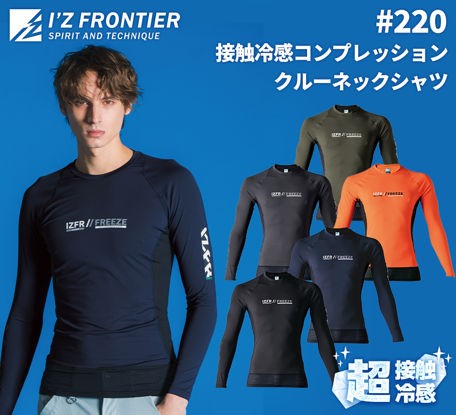 アイズフロンティア インナー #220 夏 超冷感 長袖 2025年新作 接触冷感コンプレッション クルーネックシャツ 夏用 作業服 春夏 ストレッチ UVカット 紫外線対策 速乾 涼しい クール アウトドア 野外 I'Z FRONTIER [メール便対応]