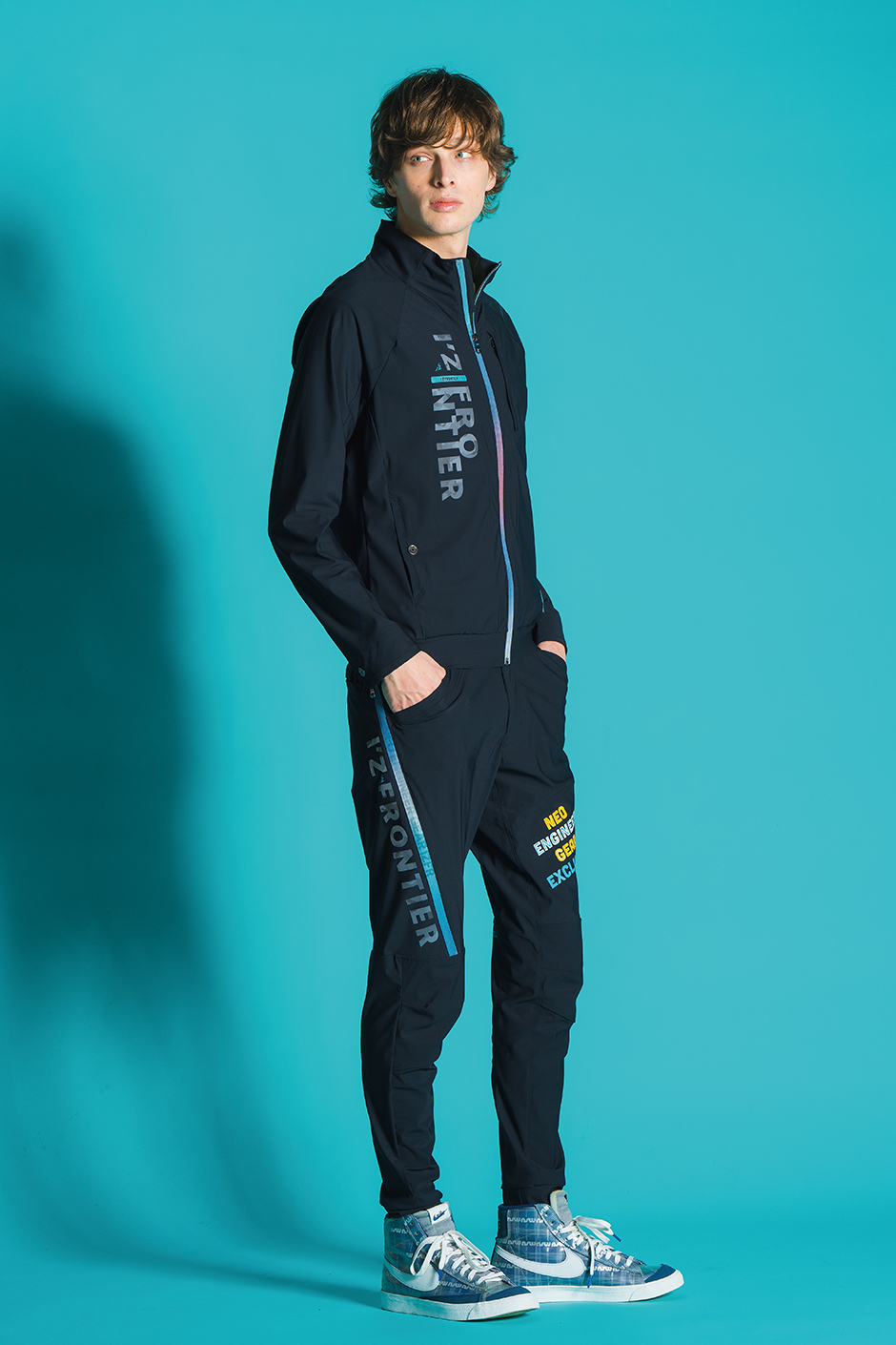 ●シャープでスタイリッシュなシルエットにホログラム仕様の止水ファスナーが先進的なネオスポーツの世界観を表現