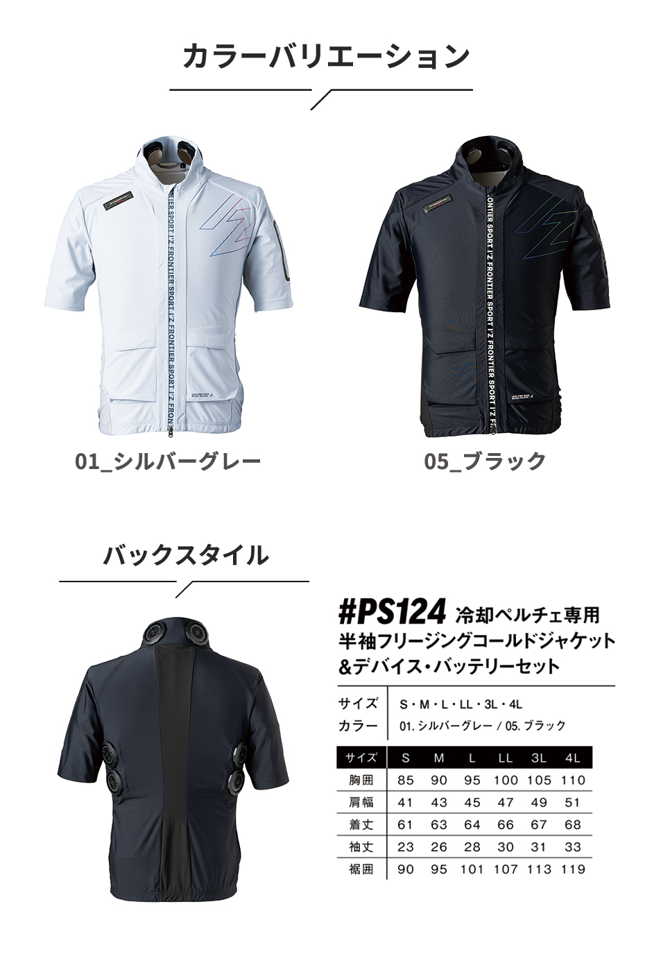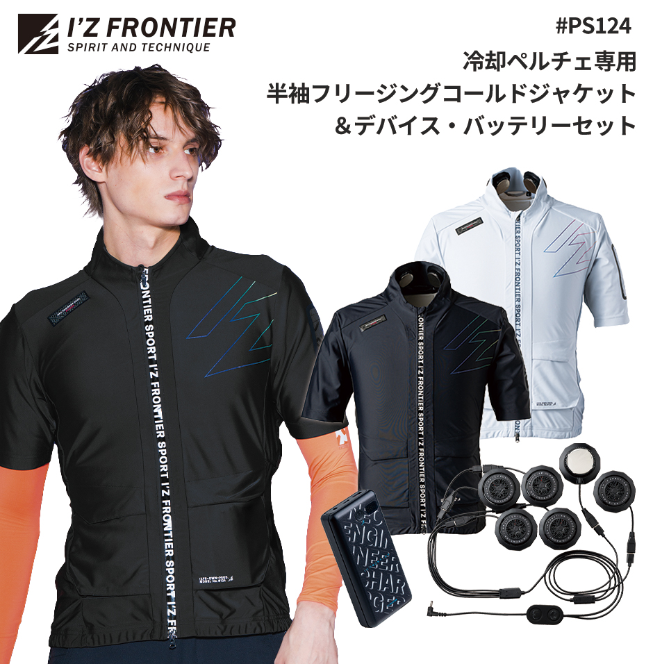 ペルチェベスト 冷却作業着 アイズフロンティア I'Z FRONTIER 冷却ペルチェ専用 半袖フリージングコールドジャケット&デバイス・バッテリーセット #PS124 作業着 作業服 春夏