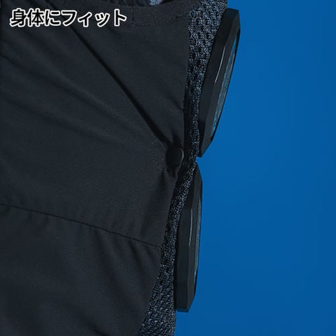 | 本体:ポリエステルハードメッシュ ポリエステル100%別布(脇・背中心):経編ナイロンストレッチ天竺 ナイロン75%/ポリウレタン25% 別布(バッテリーポケット・ショルダーパーツ):300Tマイクロリップ ポリエステル100% |