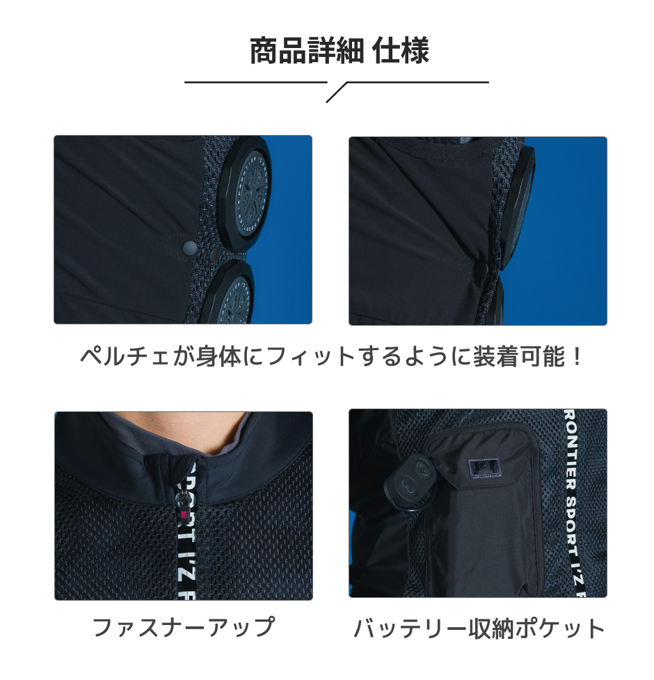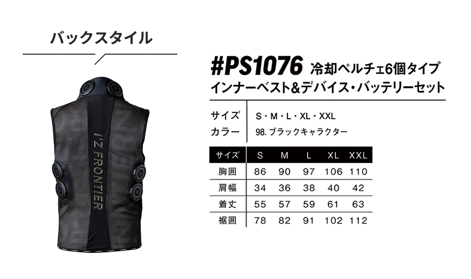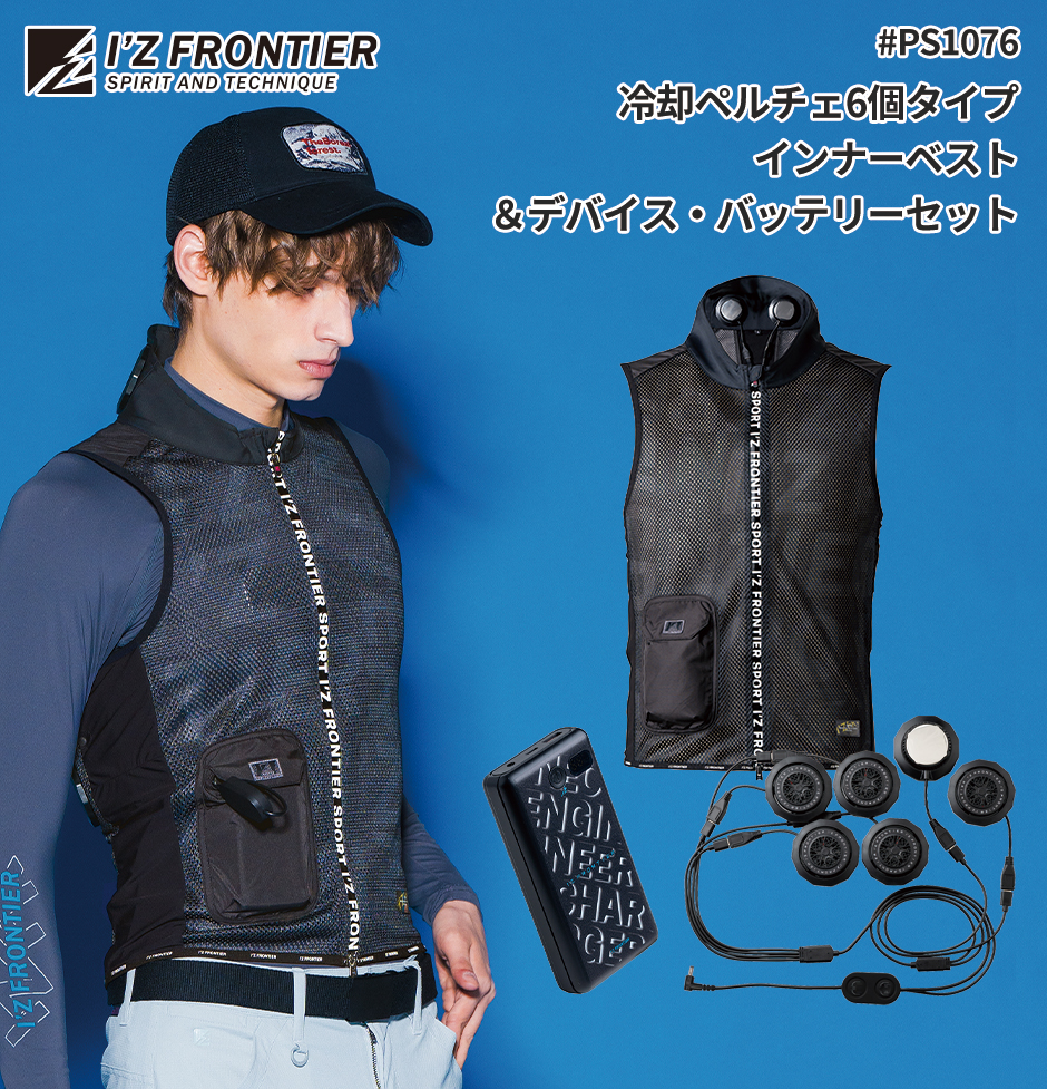 アイズフロンティア ペルチェ 冷却ベスト #PS1076 最新 2025 冷却ペルチェ6個タイプ インナーベスト&デバイス・バッテリーセット I'Z FRONTIER 冷却作業着 作業服 春夏 冷蔵 服 フルセット 冷たい 長時間 最強 熱中症対策 メッシュ かっこいい スマート