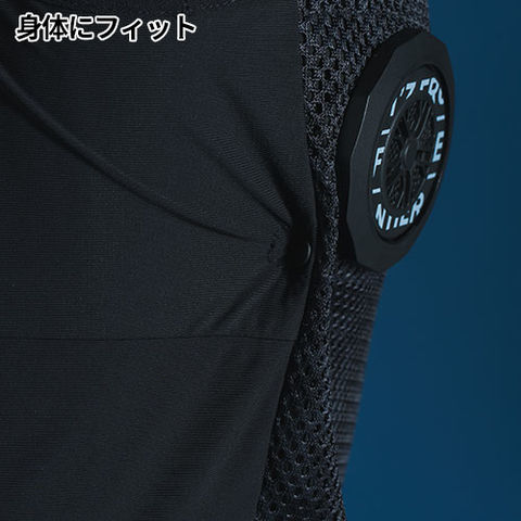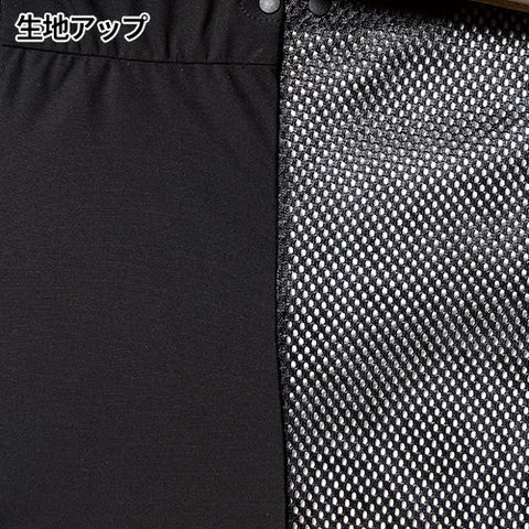 | 本体:ポリエステルハードメッシュ ポリエステル100%別布(脇・背中心):経編ナイロンストレッチ天竺 ナイロン75%/ポリウレタン25% 別布(バッテリーポケット・ショルダーパーツ):300Tマイクロリップ ポリエステル100% |