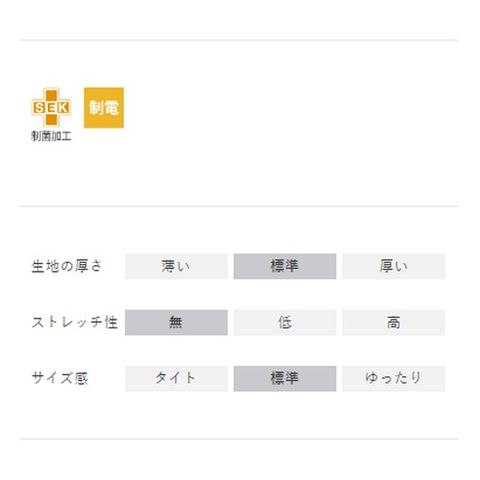 | 制電交織ツイル ポリエステル65%・綿35% 生地の厚み:やや薄 |