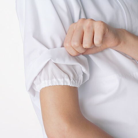 白衣 衛生衣 ブルゾン 半袖 住商モンブラン 8-722 食品衛生白衣 上着 作業着 作業服 コート 制服 ユニフォーム 食品 食品工場 食品加工 調理 男性 女性 メンズ レディース 男女兼用 毛髪 混入防止 薄手 抗菌