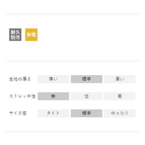 | 耐久防汚加工(リップガード:汚れ除去性、撥油性、洗濯耐久性に優れています。)、制電 |