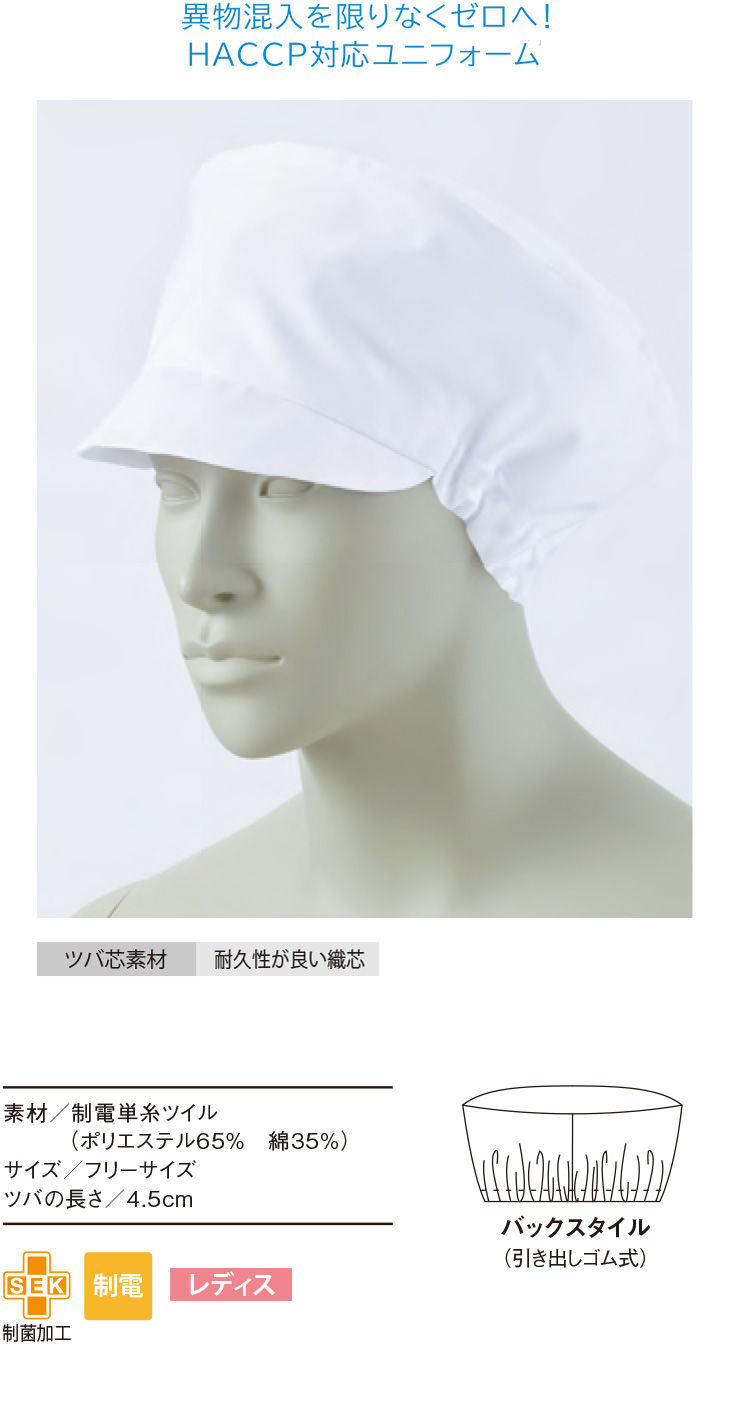 【メール便対応】衛生帽子 衛生キャップ レディス帽 衛生帽 帽子 キャスケット 食品 白衣 衛生衣 女性 レディース 住商モンブラン 9-028 食品工場 食品加工 厨房 調理 厚手 制電 制服 ユニフォーム 人気 激安 安い コンパクト