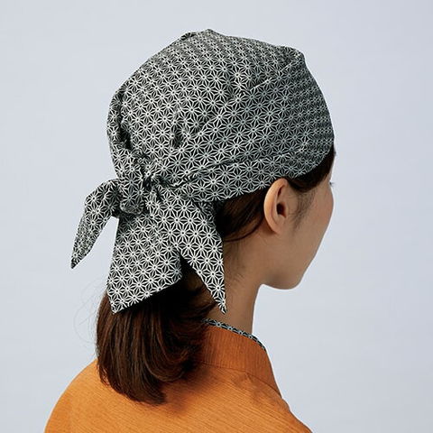 【メール便対応】バンダナ 手ぬぐい 和柄 お祭り 縁日 調理 麻の葉 和 柄物 黒 飲食店 レストラン カフェ 和食店 蕎麦屋 そば屋 うどん店 屋台 ラーメン屋 住商モンブラン 制服 ユニフォーム おしゃれ かわいい