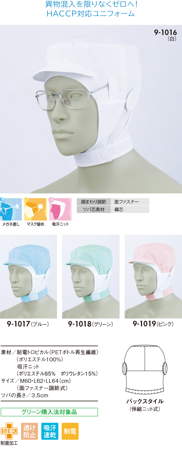 【メール便対応】衛生帽子 ショート 頭巾帽子 衛生帽 帽子 頭巾 フード フード帽子 食品 白衣 衛生衣 男性 女性 メンズ レディース 住商モンブラン 9-1016・1017・1018・1019 食品工場 食品加工 仕事 厨房 調理 制服 ユニフォーム 速乾 ニット