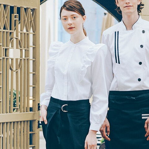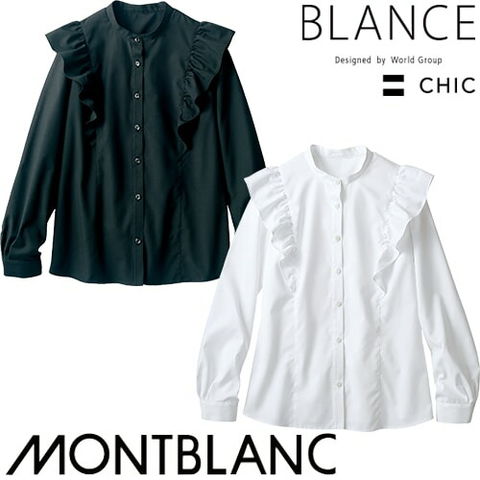 白シャツ ホワイト 黒シャツ ブラック スタンドカラー 立ち襟 制服 ユニフォーム 住商モンブラン ブラウス 長袖 BW2001-1 BW2001-2 飲食店 レディース レストラン カフェ 厨房 中華 おしゃれ かわいい 可愛い 高級 上品 ストレッチ 伸縮性