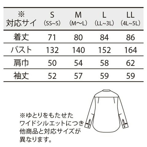 | ゆとりを持たせたワイドシルエットにつき、他商品と対応サイズが異なります。 |