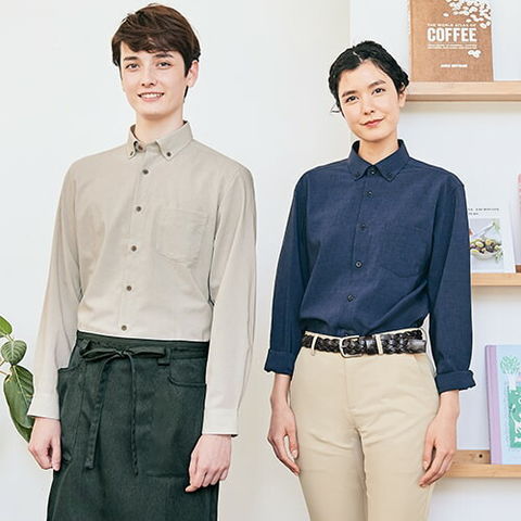 [ 特別価格 ]シャツ ワイシャツ 住商モンブラン ボタンダウン 長袖 OV2501-3・8・9 飲食店 制服 ユニフォーム メンズ レディース レストラン カフェ ベーカリー パン屋 おしゃれ かわいい 可愛い かっこいい 抗菌