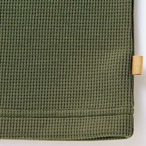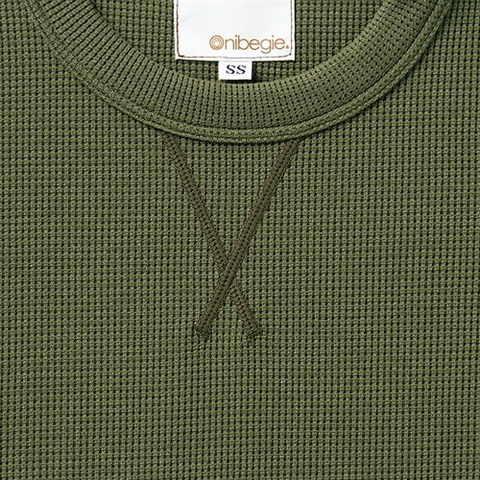 コットンのような風合いで肌ざわりのよいワッフル素材。