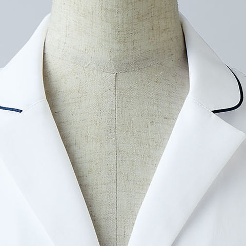 住商モンブランのドクターコート(シングル) 白衣、制菌・透け防止・制電・防汚加工を付与、スクラブの上に羽織りやすいゆとりのあるシルエットのドクターコート