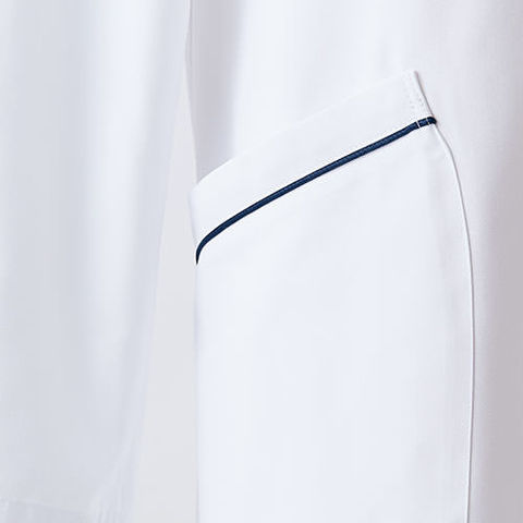 | 襟元をすっきり見せるパイピング。 ポケットの上にもパイピングを配置。 胸ポケット内にはペンがすっきり収まる内ポケット。 |