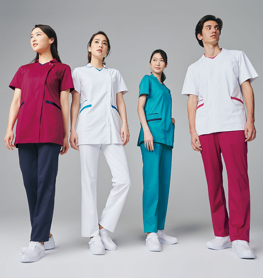 | 制菌、透け防止(白/ターコイズ、白/ネイビーのみ)、吸汗速乾、ストレッチ、制電、防汚 |