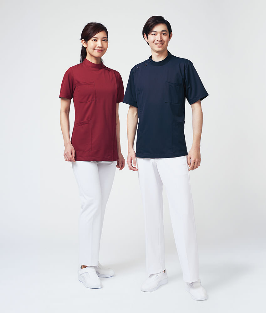 住商モンブランのメディカルジャケット ケーシータイプ、制菌・透け防止・吸汗速乾・制電・防汚加工を付与、軽量ニット素材とカラーリングが魅力的なケーシー