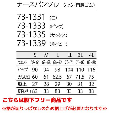 パンツ ナースパンツ 73-1335・1339・1333・1331 白衣 ズボン 住商モンブラン スクラブ レディース 女性用 医療 制服 ユニフォーム 医者 看護師 ナース 楽 快適 速乾 病院 歯科 歯科衛生士 おしゃれ かわいい 可愛い