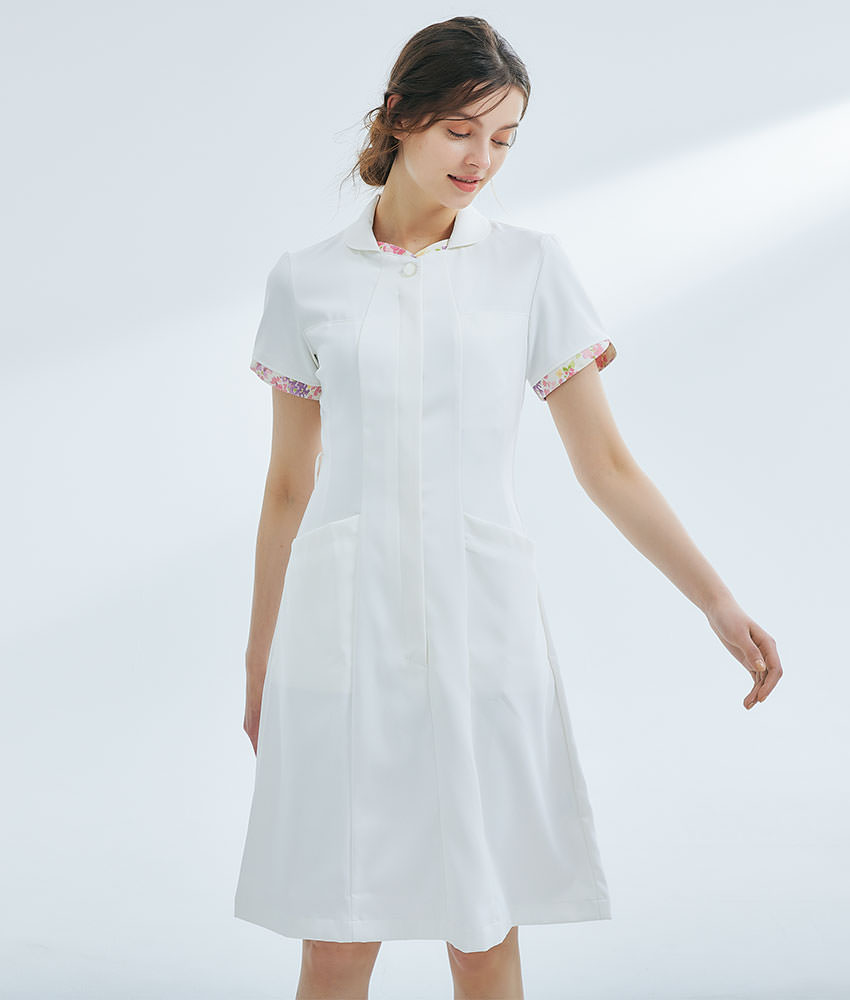 ナースワンピース 白衣 ナース服 LW401 住商モンブラン 半袖 レディース 女性用 医療用 看護師 ナース ナースウェア 病院 クリニック エステ サロン 事務 花柄 華やか フェミニン おしゃれ かわいい 可愛い きれいめ