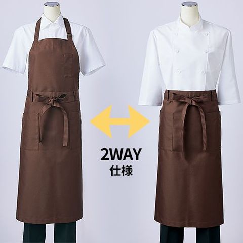 サロンエプロンとしても使用できる2wayタイプの胸当てエプロン。片側マチポケット付き。撥水撥油素材。