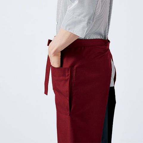 | サロンエプロンとしても使用できる2wayタイプの胸当てエプロン。片側マチポケット付き。撥水撥油素材。エコマーク認定商品。グリーン購入法対象商品。 |