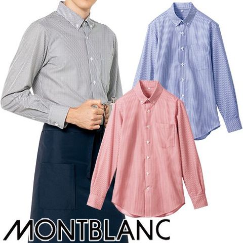 シャツ ワイシャツ 住商モンブラン ストライプシャツ ボタンダウン 長袖 SS001-22・72・92 飲食店 制服 ユニフォーム メンズ レディース レストラン カフェ おしゃれ かわいい 可愛い かっこいい