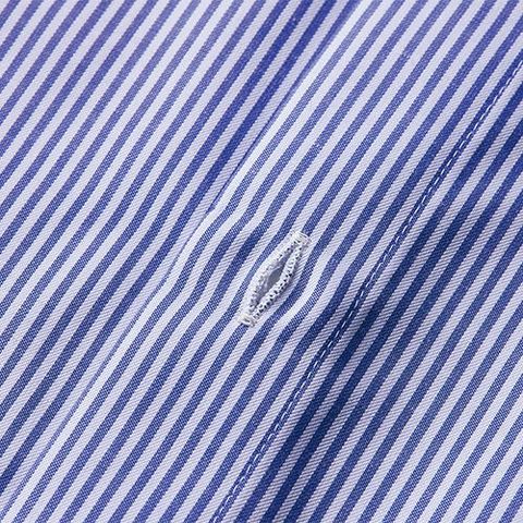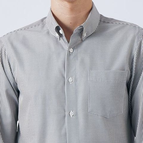 コンパクトな襟と細身シルエットでスタイリッシュに進化したシャツシリーズ。美しい立ち姿と動きやすを両立させた長袖のストライプシャツです。袖下のマチやバックスタイルのタック位置の工夫を施し、スタイルアップと動きやすさを併せ持った機能設計。ボタンを留めても開けてもきちんと見えるデザインです。