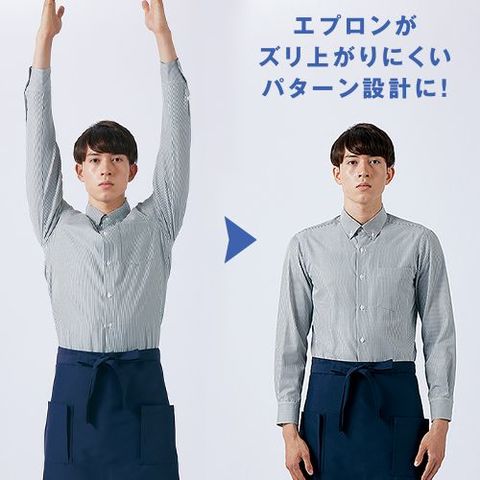 シャツ ワイシャツ 住商モンブラン ストライプシャツ ボタンダウン 長袖 SS001-22・72・92 飲食店 制服 ユニフォーム メンズ レディース レストラン カフェ おしゃれ かわいい 可愛い かっこいいのレビュー