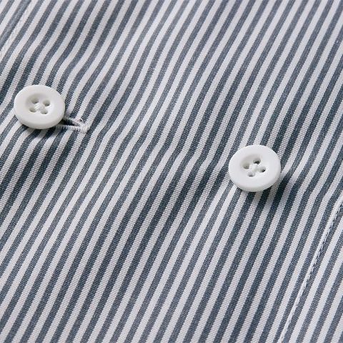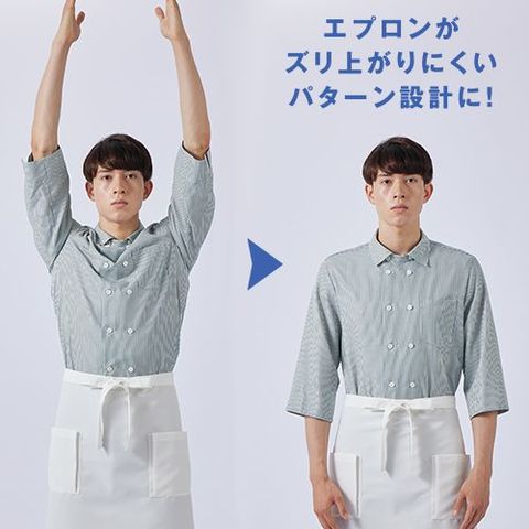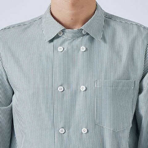 | コンパクトな襟と細身シルエットでスタイリッシュに進化したシャツシリーズ。美しい立ち姿と動きやすを両立させた7分袖のコックコート風ストライプシャツです。首回りにゆとりをもたせることで着脱しやすく、袖下のマチで動きやすく。長めの着丈でシャツインもしやすいデザインです。 |